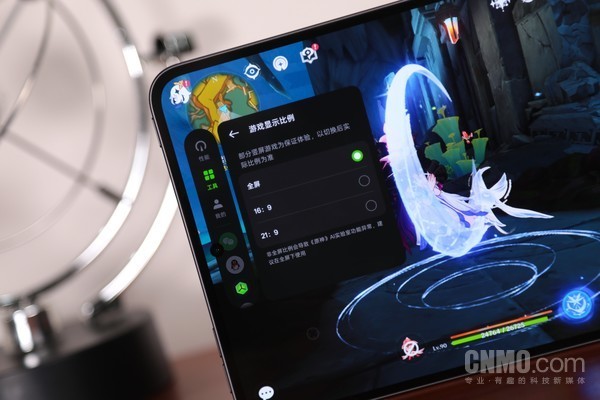 此外,大多数手游针对16:9这类的比例进行优化,3:2 比例可能导致画面上下出现黑边,或者需要裁切显示。针对这个问题,OPPO Pad Mini在游戏助手中专门提供了游戏显示比例的功能选项,除了全屏之外,还能够选择16:9和21:9的显示比例。