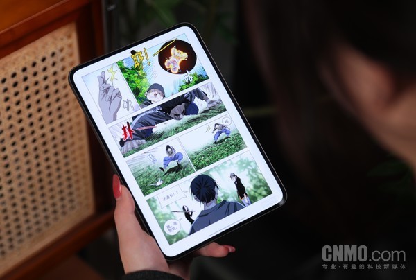 但真正让这块屏幕与众不同的,是它的3:2屏幕比例。传统的平板屏幕大多采用16:10或16:9的比例,本质上是在迁就视频和电影的宽幅画面。而3:2的比例与A4纸相近,与日常的阅读习惯高度吻合。再加上2.99mm的极窄边框和92.5%的超大屏占比,进一步放大了这种舒适观感,让视觉效果更加出众。